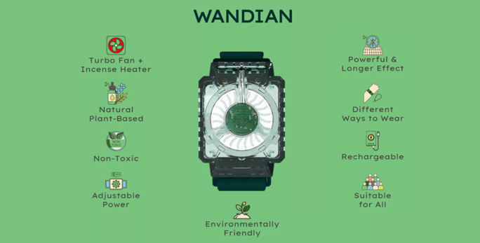 【結(jié)構(gòu)設(shè)計(jì)】WANDIAN帶有一種小巧而強(qiáng)大的驅(qū)蚊劑,可以保護(hù)用戶免受討厭的蟲子的侵害。目前的驅(qū)蚊劑存在的問題是:煙熏灰、壽命短、對(duì)呼吸道不友好、對(duì)兒童和孕婦有害,