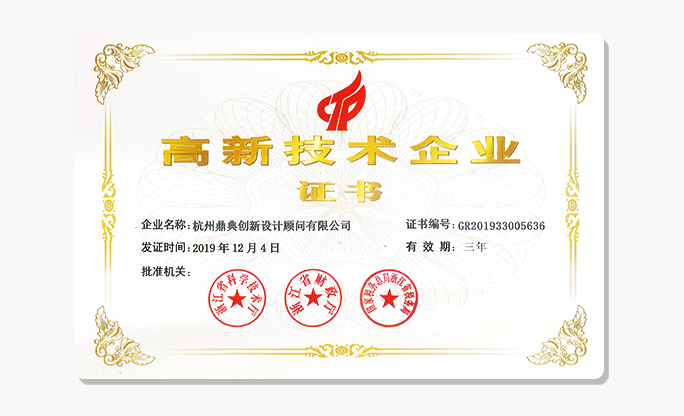 杭州鼎典創(chuàng)造體設(shè)計(jì)有限公司榮獲 —— 國(guó)家高新技術(shù)企業(yè)認(rèn)定